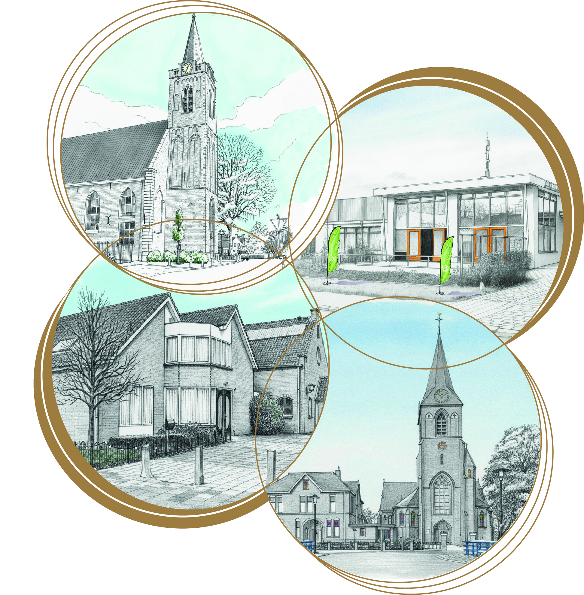 Al jaren bestaat er een warm contact tussen de vier geloofsgemeenschappen. De gezamenlijke kerstbrochure, de Kerstsamenzang en de interkerkelijke gespreksavonden zijn daar mooie voorbeelden van. Ook tussen de voorgangers en leden van de verschillende geloofsgemeenschappen is sprake van een hartelijke verbondenheid.